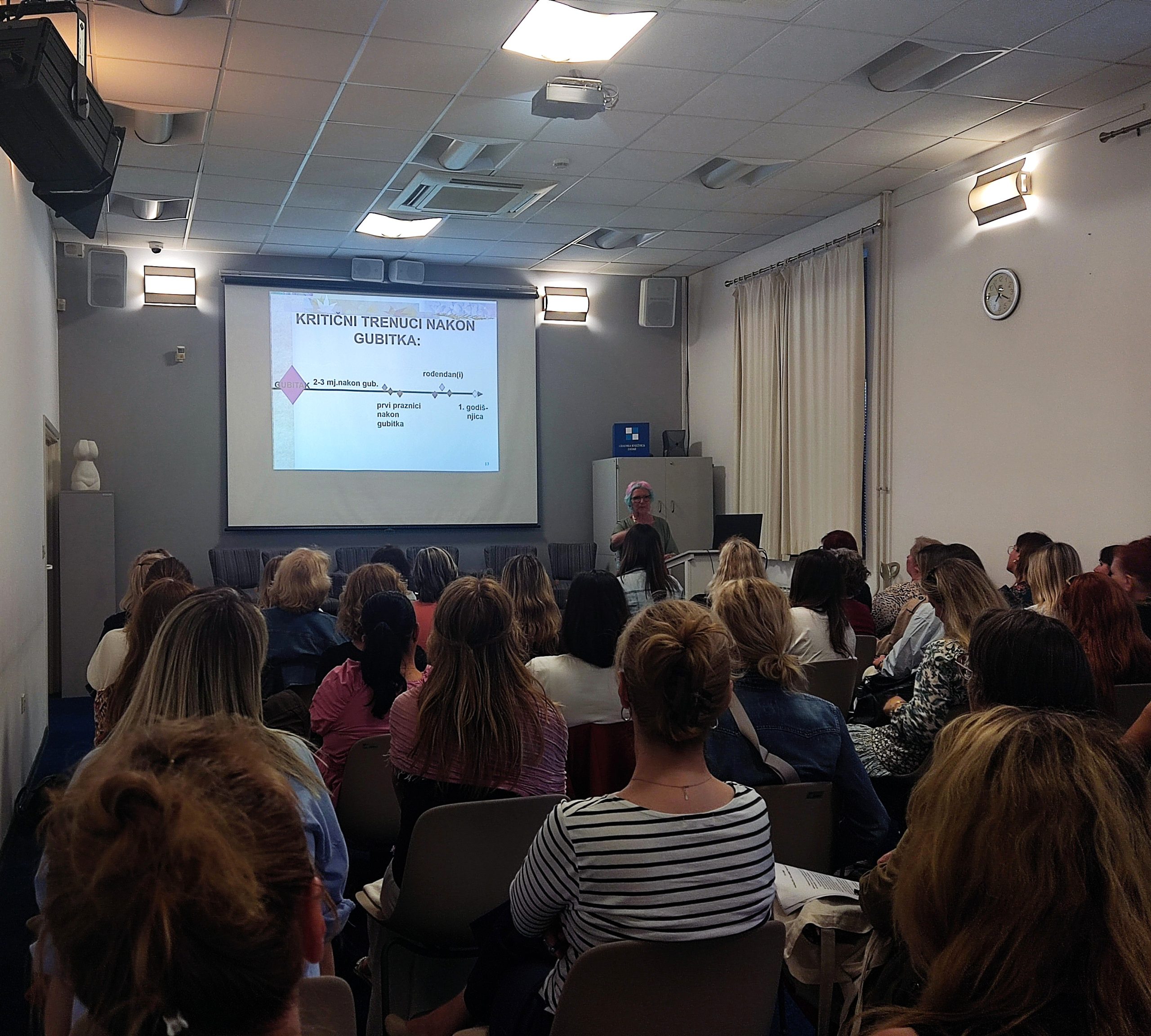 U utorak 3. lipnja, u Gradskoj knjižnici Zadar, prof. dr.sc. Lidija Arambašić održala je predavanje „GUBICI, TUGOVANJE, PODRŠKA: što pomaže, a što ne pomaže kao podrška nakon gubitka?“. Na predavanju se okupilo preko 50 stručnjaka iz različitih područja, uključujući socijalne radnike, psihologe, rehabilitatore, pravnike i sl.,