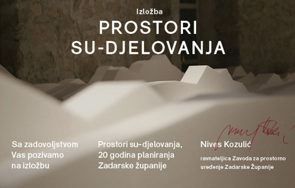 U četvrtak, 10. listopada s početkom u 19 sati, otvorit će se izložba “Prostori su-djelovanja, 20 godina planiranja Zadarske županije”.
