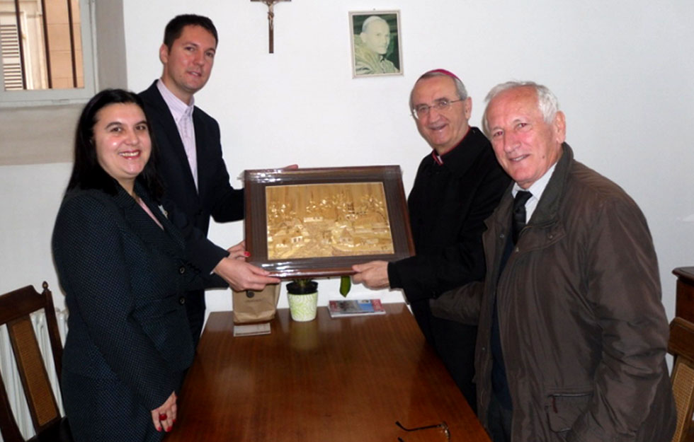 Među brojnima koji su svojom nazočnošću uveličali biogradsko slavlje, svakako su i predstavnici HKPD ‘Matija Gubec’ iz Tavankuta. To je društvo već dobro poznato Biograđanima i žiteljima susjednih mjesta jer se tijekom minulog ljeta, u sklopu uzajamne kulturne suradnje, predstavilo svojim nošnjama, plesom ali i posebnom umjetnošću-izradom ‘slamnatih’ slika. Izaslanstvo iz mjesta Tavankut u Vojvodini na čelu s predsjednikom HKPD-a, Ladisavom Sukovićem, bili su i ovom prigodom dragi gosti u Gradu Biogradu na Moru, a svoje su čuvene slike između ostalog darovali i Zadarskom nadbiskupu mons. Želimiru Puljiću koji ih je primio u audijenciji u društvu stručne suradnice pri biogradskoj Gradskoj upravi Melise Keser i prof. Bože Došena.