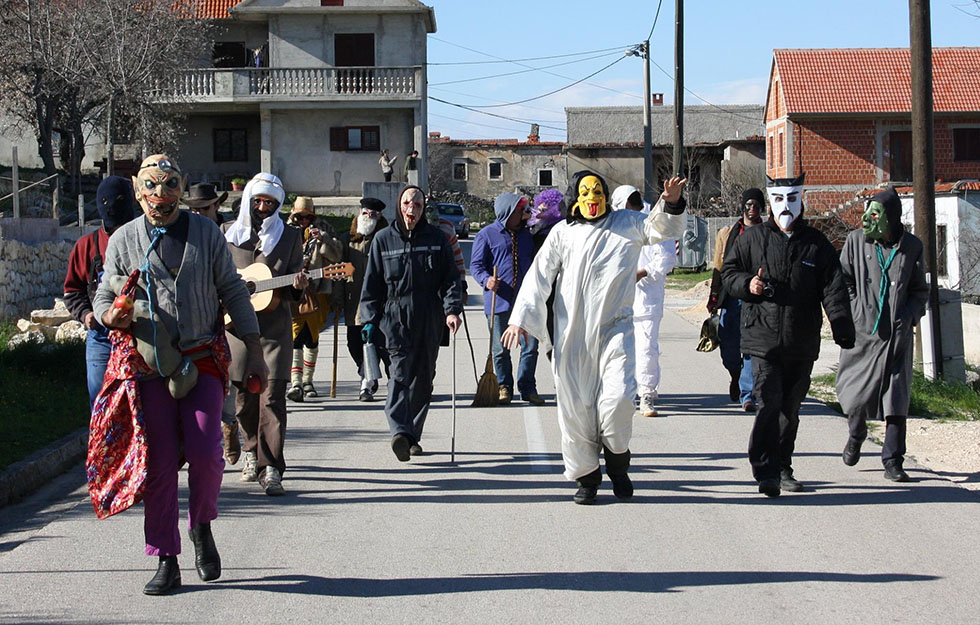U veseloj i šarenoj, a kako drugačije u toj prilici, koloni pod maskama skupilo se pedeset i nešto mještana. Kako to obično i biva kad su seoske maškare u pitanju, i kako to uostalom nalaže tradicija, hodali su od kuće do kuće po cijelom selu i pritom izvodili razno razne “maškarije, ludosti i nepodopštine”, a dobrodušni domaćini su razigrane maškare, kao i nekada, darivali domaćim divenicama, pancetom, vinom, kobasicama…