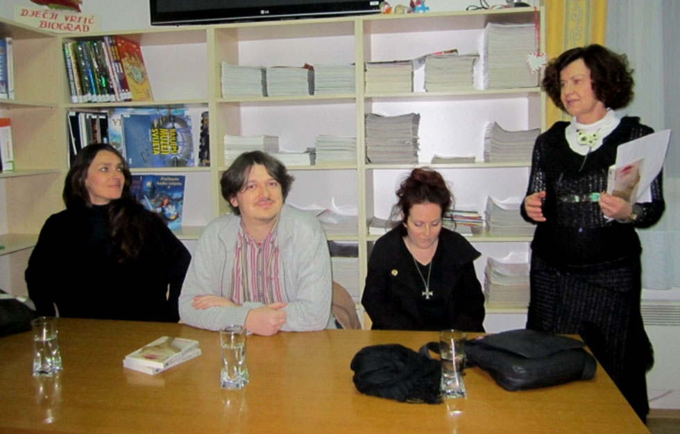 Uz predstavljanje knjige nazočnima u biogradskoj knjižnici svoje su radove čitali i Iva Pejković poznata mlada spisateljica i autorica romana “Mačka u čizmama”, koja je tom prilikom pročitala nekoliko kratkih priča, među kojima “Nesanica” i “Lutka”, dok je Staša Aras čitala posebno zanimljiv zapis “Život japanske babe“i popularni „Svinjac“.