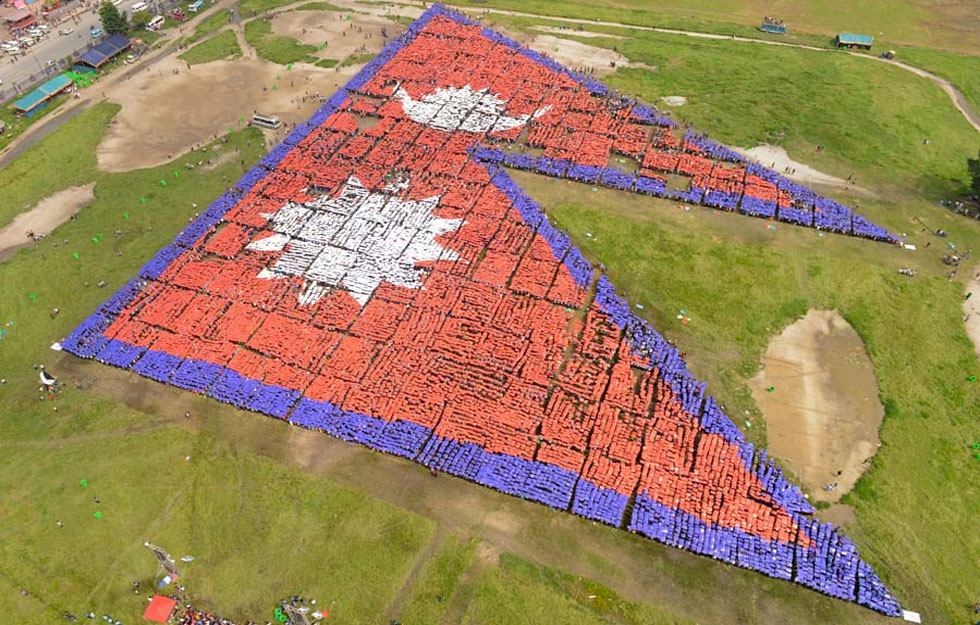 Više od 35 tisuća ljudi okupilo se u subotu u Katmanduu kako bi svojim tijelima načinili najveću “živu zastavu” i tako ušli u Guinnesovu knjigu rekorda.