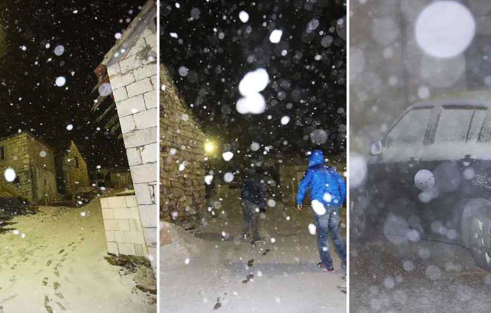 Snijeg je padao čak i na višim dijelovima Čiova, a u Zagvozdu je zabilježeno 5 centimetara snijega, javio je Crometeo.