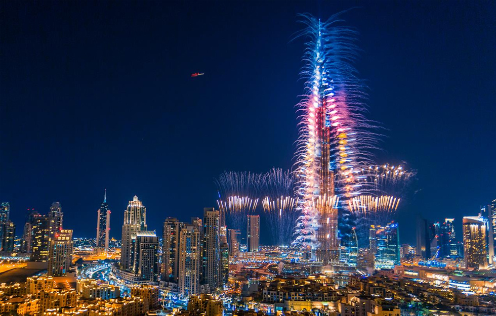 U 21 sat po našem vremenu u Novu su ušli i stanovnici Dubaija. Ondje je priređen spektakularni vatromet uz LED zaslon koji je osvijetlio neboderBurj Khalifa visok 828 metara. Za cijeli je spektakl bilo potrebno oko 70.000 LED lampica pa je spektakl opravdano ušao u Guinnessovu knjigu rekorda!