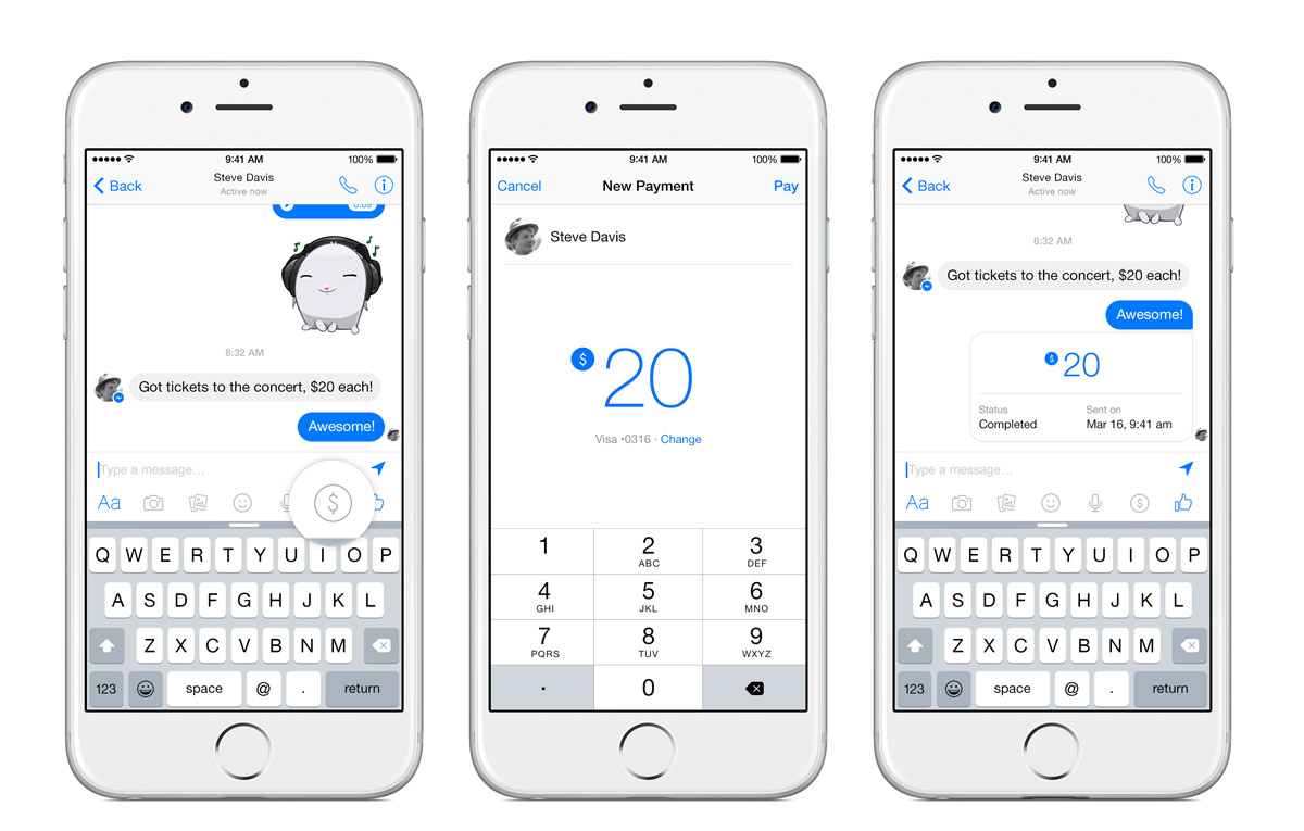 O plaćanju kroz Facebook Messenger pisalo se još prošle jeseni, no sada je iz Facebooka stigla i službena potvrda da ćemo prijateljima kroz aplikaciju za slanje poruka moći slati i novac. Ova opcija stići će u sljedećih par mjeseci u Messenger, ali za sada samo za američke korisnike.