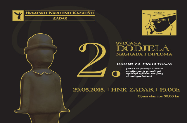U petak, 29. svibnja s početkom u 19 sati kazališna udruga IGRAJMO SE u suorganizaciji s HNK ZADARpozivaju Vas na 2. SVEČANU DODJELU NAGRADA I DIPLOMA humanitarnog karaktera pod nazivom IGROM ZA PRIJATELJA. Gost večeri je Doris Pinčić Rogoznica.