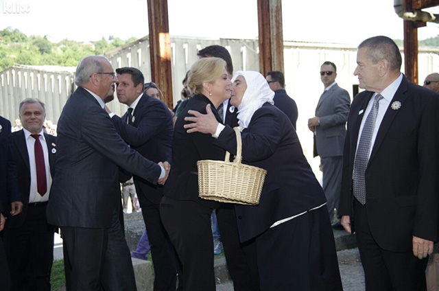 Majke Srebrenice pozdravile su se sa predsjednicom Hrvatske Kolindom Grabar-Kitarović, zahvalile su joj se na dolasku i poklonile Cvijet Srebrenice, piše Klix. “Dobrodošla kraljice Balkana i nado Bosne i Hercegovine. Ti si naša”, kazale su Kolindi Grabar-Kitarović Majke Srebrenice.