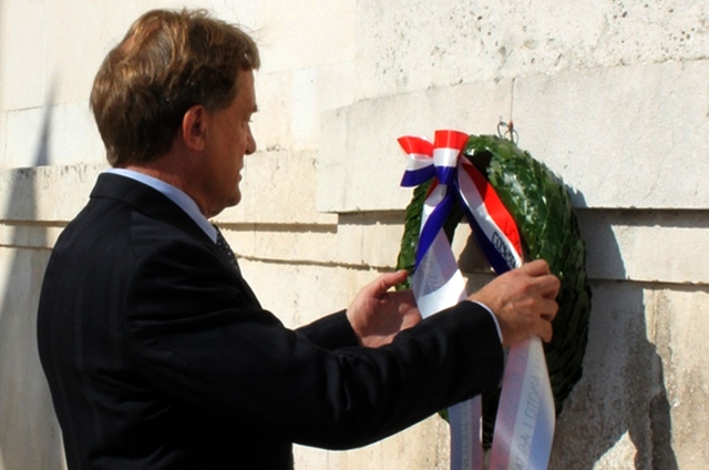 Povodom obljetnice Dana donošenja odluke o sjedinjenju Istre, Rijeke, Zadra i otoka s maticom zemljom Hrvatskom gradonačelnik Božidar Kalmeta sa svojim je suradnicima danas položio lovorov vijenac na spomen obilježje na Narodnom trgu, u znak sjećanja svim poginulim borcima protiv fašizma.