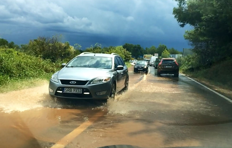 Zbog jake kiše na autocesti A1 između čvora i tunela Sveti Rok vozi se uz ograničenje brzine od 80 km na sat. Na cestama u gorju te duž Jadranske i Ličke (DC1) magistrale (DC8) mogući su odroni.