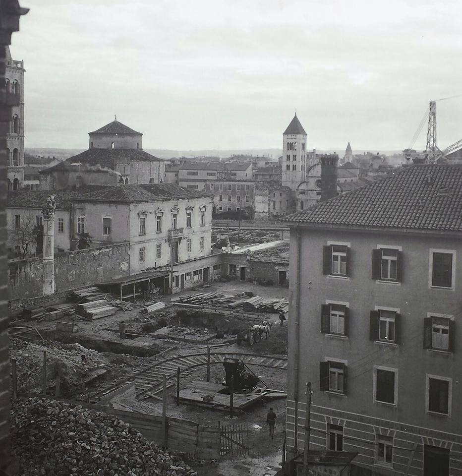 30. prosinca 1943. u naletu savezničkih aviona razoren je i ovaj dio grada Srušene su gotovo sve zgrade koje su okruživale trg. Nakon toga, pristupilo se iskopavanju i rekonstrukciji rimskog Foruma. Arheoloških iskapanjem svjetlo dana ugledali su fragmenti foruma, tako da se danas na ovom potezu može vidjeti ostatak rimskog kapitolija i posvećenog hrama koji je bio posvećen rimskoj trijadi bogova – Jupiteru, Junoni i Minervi. Podno kapitela vide se ostaci ležišta i žrtvenika. Ostala su i dva trijumfalna stupa, od kojih je jedan premješten ispred Providurove palače, a drugi je ostao na svom mjestu i u srednjem vijeku služio kao stup srama.