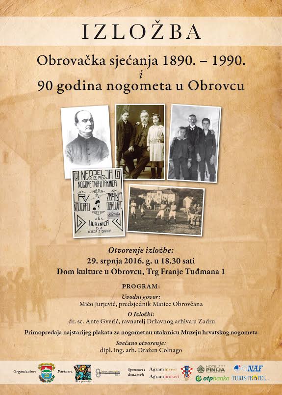 Dana 29. srpnja 2016. u Domu kulture u Obrovcu, s početkom u 18,30 sati, MATICA OBROVČANA otvara izložbu pod nazivom: ”Obrovačka sjećanja 1890. – 1990.” i ”90 godina nogometa u Obrovcu”.