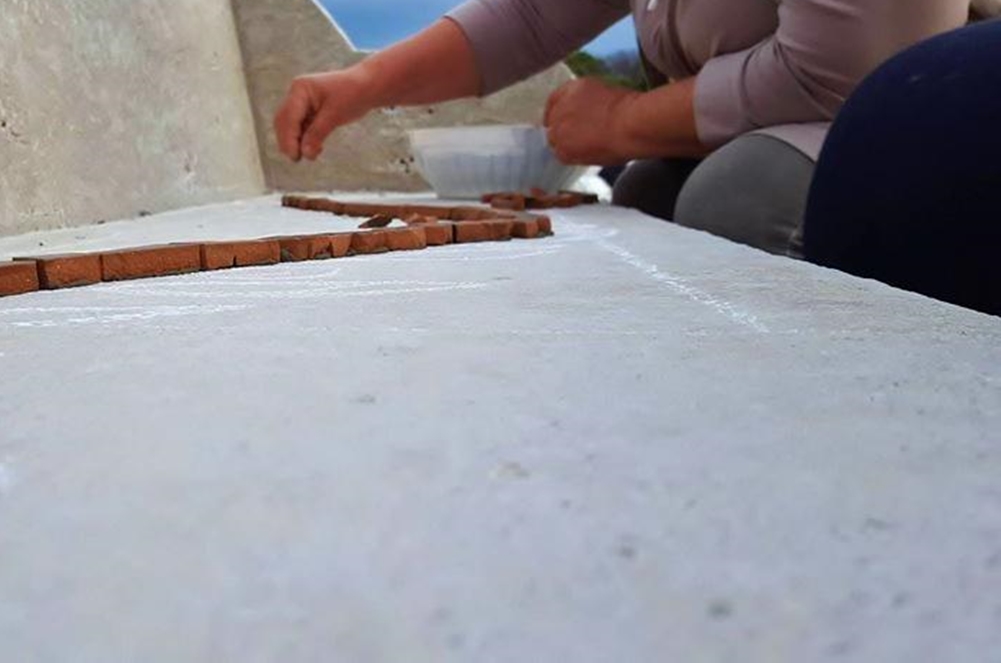 Ni olujna bura ni povremena kiša nisu u petak, 15. srpnja odgodile početak radova na novoj mozaik-klupi gospođe Božice Kliman u Mulinama.