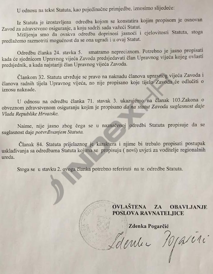 “Ministarstvo financija i Ministarstvo vanjskih i europskih poslova nije imalo primjedbi na dostavljeni Statut, a Ured za zakonodavstvo Vlade RH dostavio je svoje mišljenje uz primjedbe na pojedine odredbe članaka Statuta (nomotehničke naravi-radi preciznijeg izričaja pojedinih odredbi Statuta)”, kažu nam iz HZZO-u.