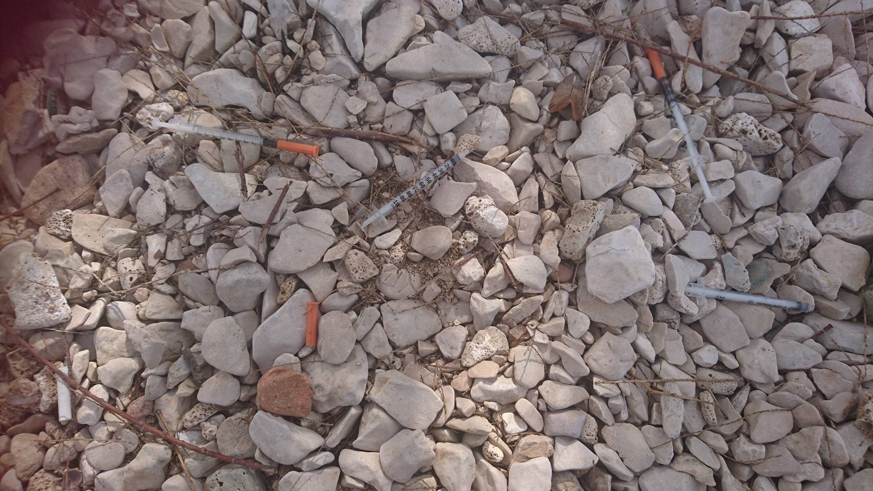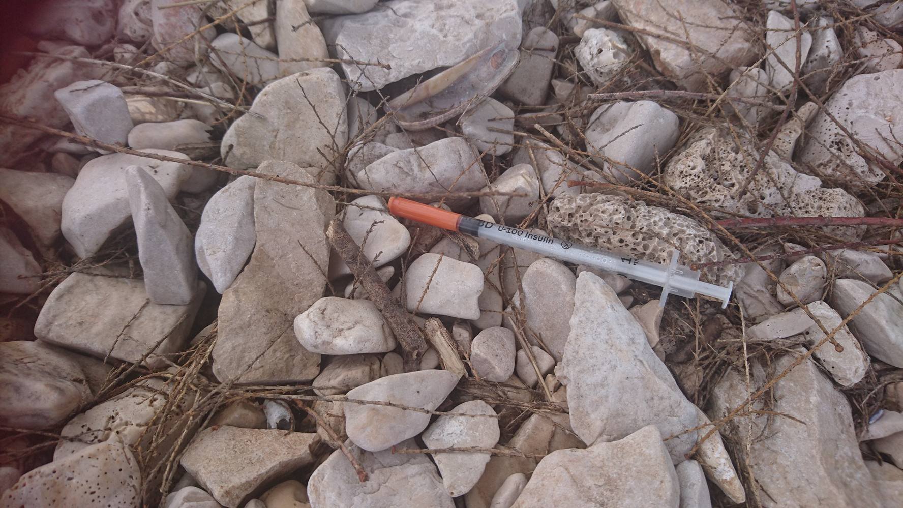 Kao da već nije imala dovoljno problema, Puntamiku je snašao još jedan – naša čitateljica pronašla je posred plaže na punti hrpu infektivnog otpada, iskorištenih narkomanskih šprica i drugog pribora među kamenjem plaže.