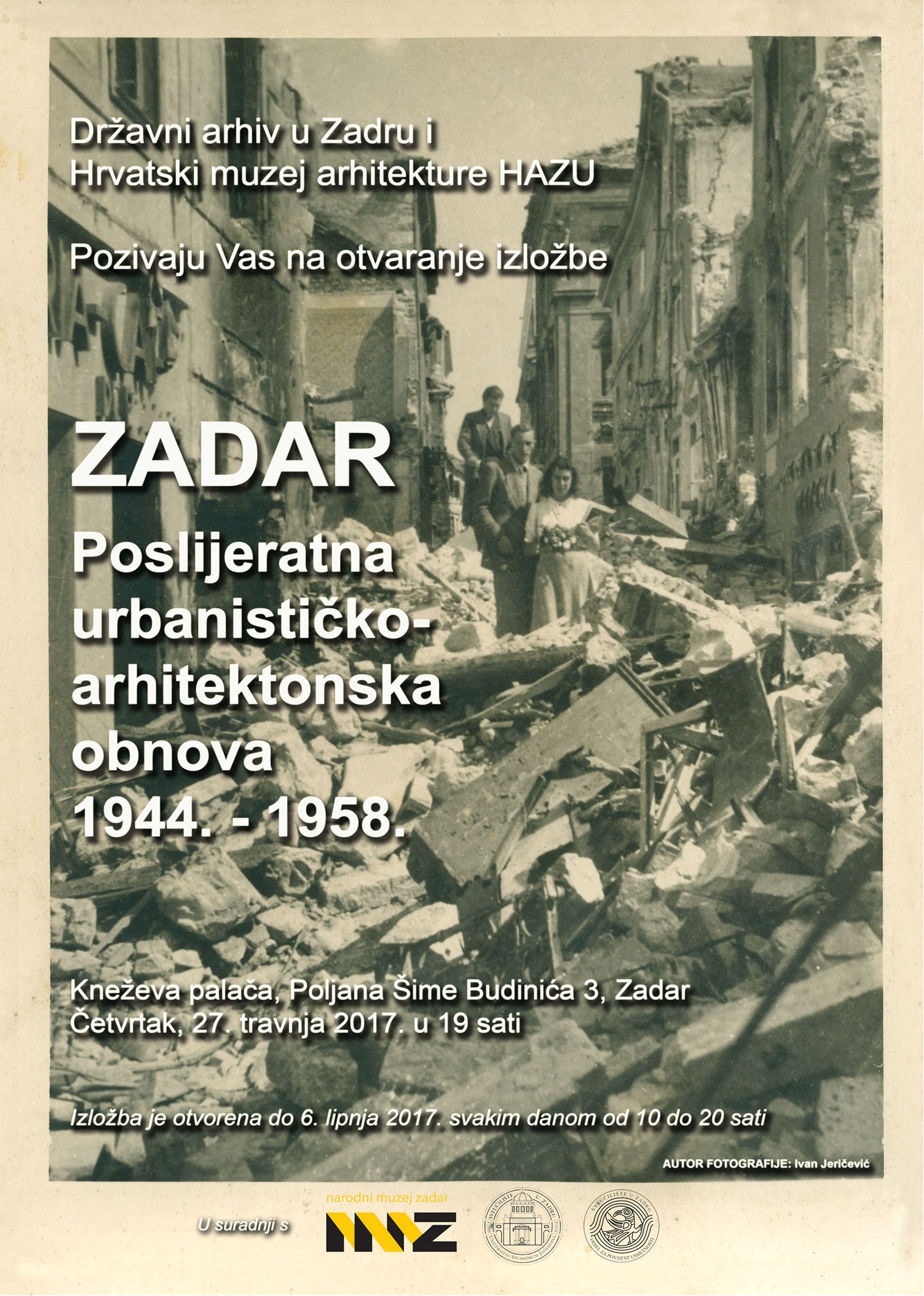 Arhitektonske i urbanističke vizije povijesne jezgre Zadra nastalih 1953. godine dio su velike izložbene priče pod nazivom „Zadar – poslijeratna urbanističko-arhitektonska obnova 1944.-1958.“ koja će nakon zagrebačke premijere dobiti i zadarski postav u Kneževoj palači 27. travnja 2017. godine.