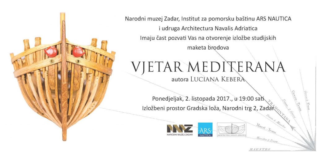 Izložba VJETAR MEDITERANA – Jadranske tradicijske barke izbor je iz bogatog opusa Luciana Kebera, a prikazuje osamnaest jadranskih tradicijskih barki u umanjenome mjerilu 1:10 i hipotetsku studiju liburne, jednog od najpoznatijih brodova rimske ratne flote, podrijetlom s istočnojadranskog liburnskog prostora.