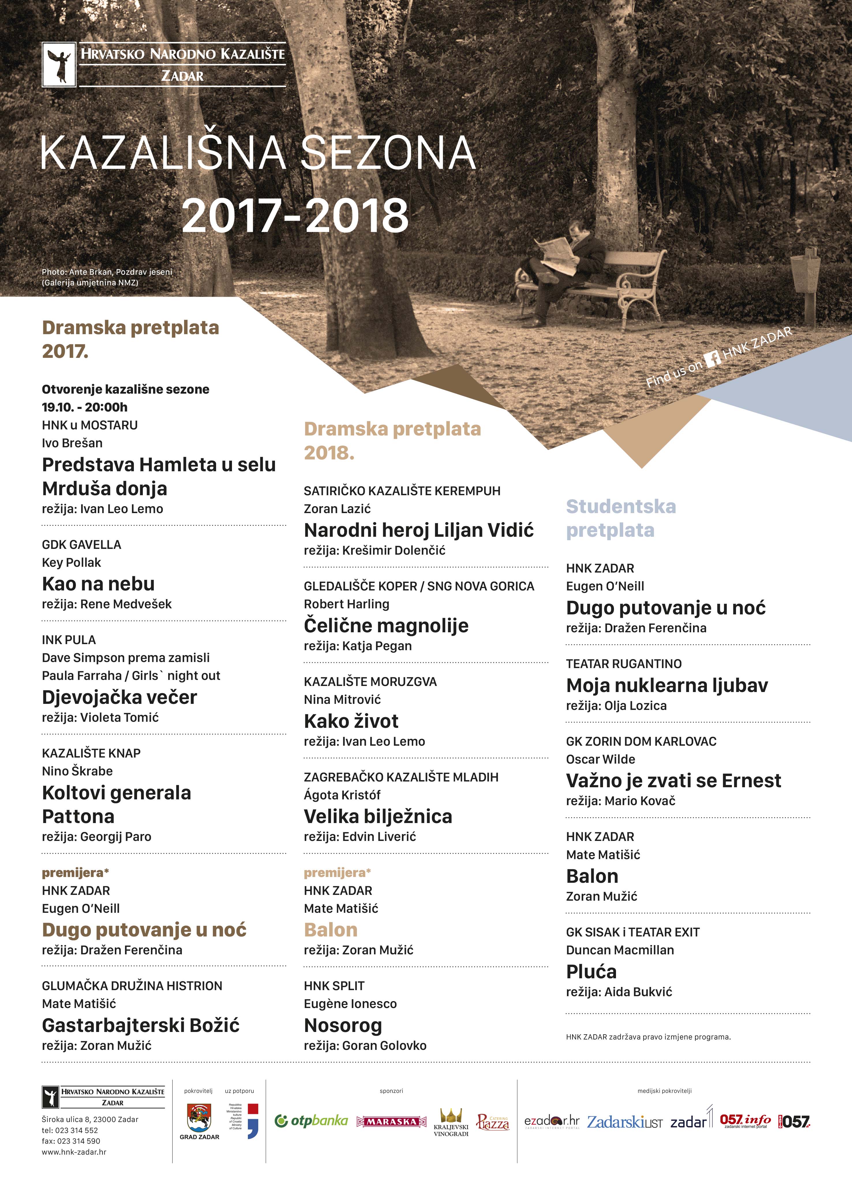 Više informacija o pretplatama na tel: 023 301 617 ili putem emaila: dramski.producent@hnk-zadar.hr .