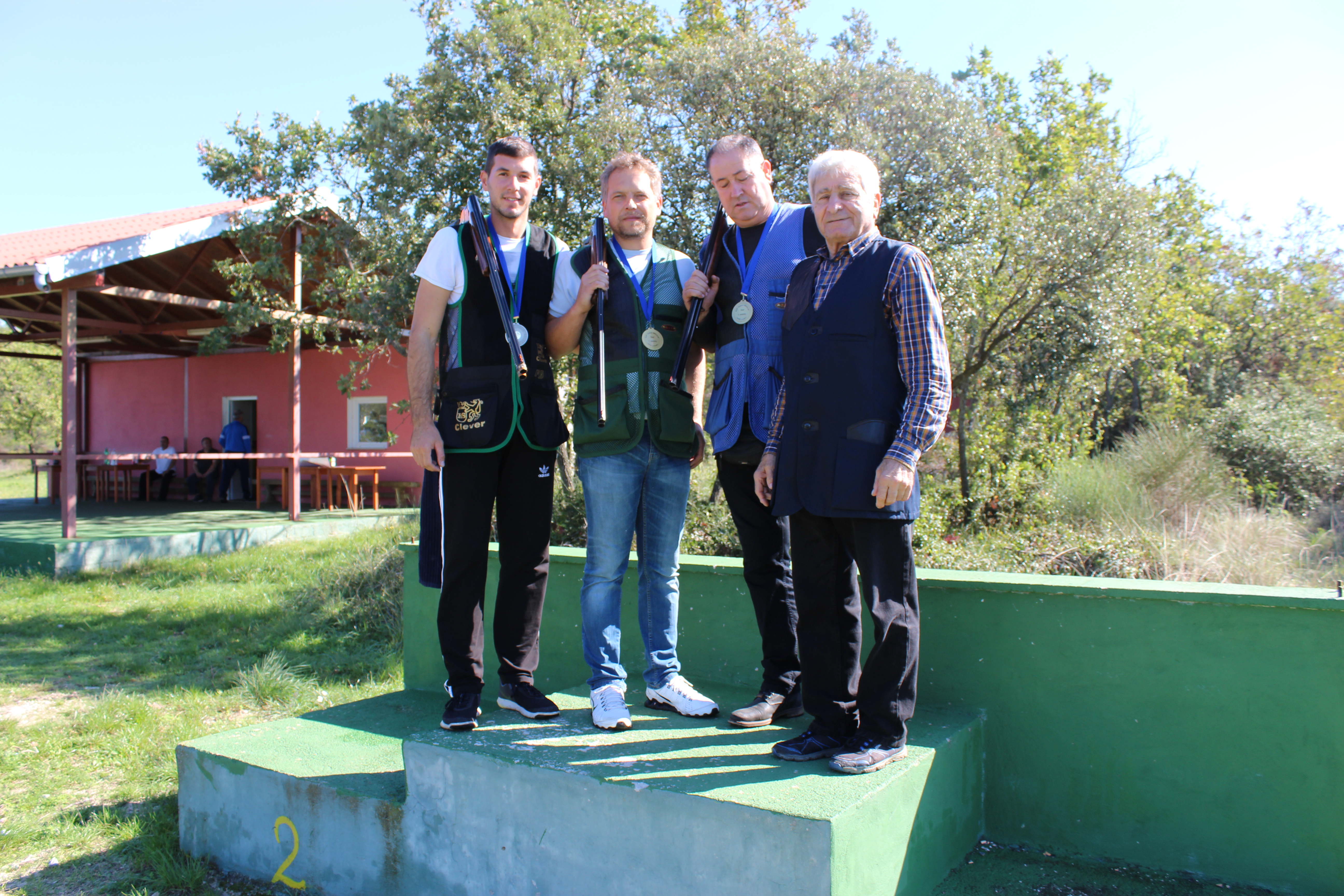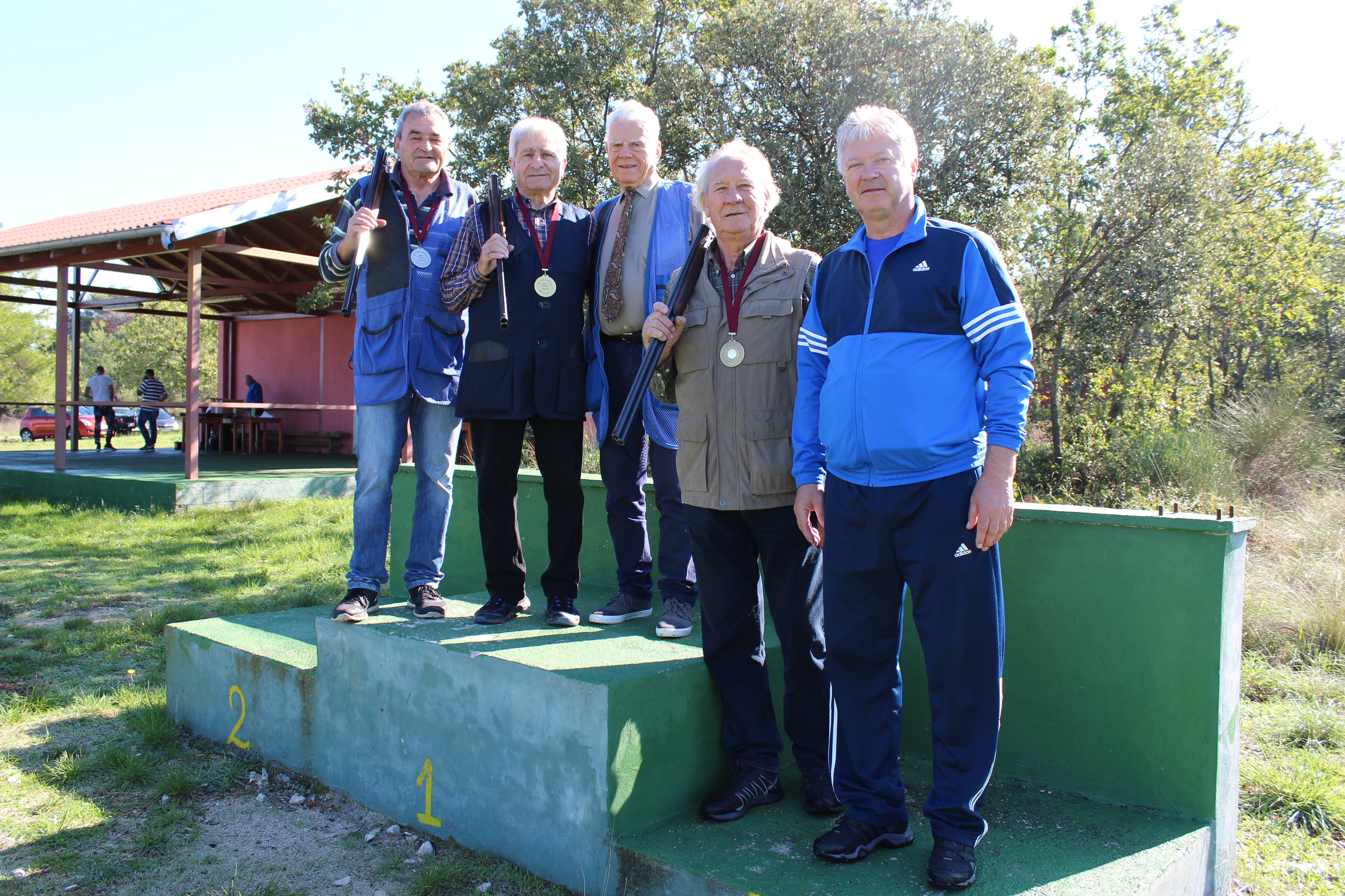 U idealnim vremenskim prilikama natjecalo se je u dvije međunarodne olimpijske discipline Skit i Trap.Sudački trojac Bruno Pavić, Arden Dražević i Lecio Matešić pozorno je pratio natjecatelje i bilježio sve¨skinute¨ glinene golubove.Po njihovoj ocjeni kao i njihovoj završnoj statistici prvo mjesto u Skitu u rangu veterana s pogođenih 15 goluba pripalo je prokušanom zadarskom strijelcu oku sokolovom Danijelu Telesmaniću Didu. Drugo mjesto osvojio je sa 12 pogodaka Bruno Pavić, treće mjesto osvojio je Mate Petrić s 10 golubova dok je četvrtu poziciju sa 9 golubova osvojio doajen zadarskog lovnog streljaštva, lovstva i kinologije Vjekoslav Surać.