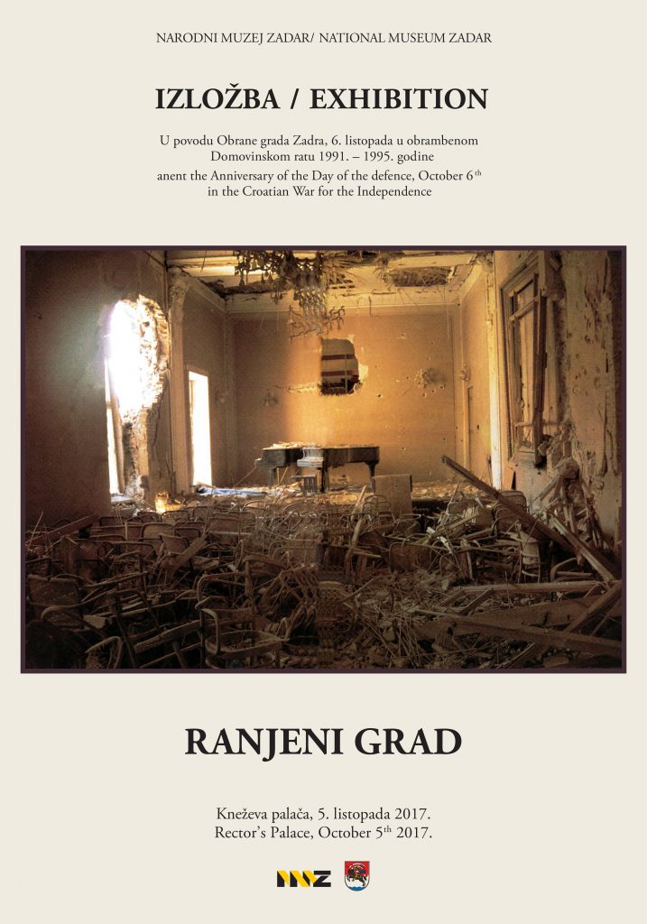 U povodu obilježavanja Dana obrane grada Zadra u Kneževoj palači će se u četvrtak, 5. listopada s početkom u 18.30 sati otvoriti izložba „Ranjeni grad“ na kojoj će biti izložene fotografije ratnog stradanja Zadra u Domovinskom ratu. Autori fotografija su zadarski fotografi.