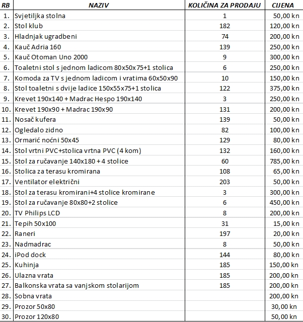 Želite jeftino opremiti svoj dom ili apartmane? Zaton Holiday Resort rasprodaje namještaj!