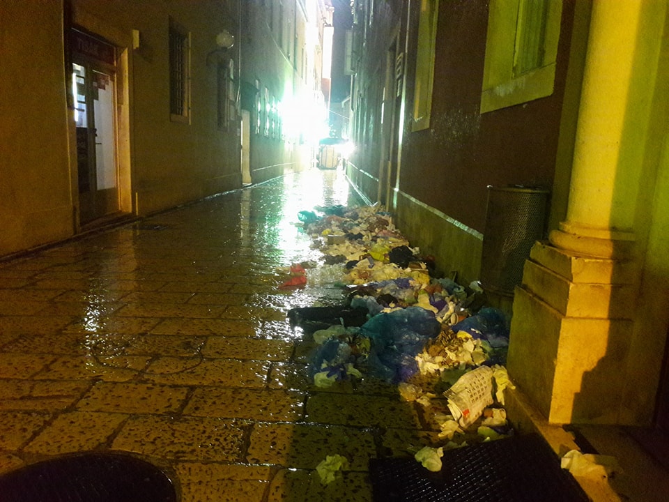 Na samo desetak metara od Trga Petra Zoranića gdje se uz glazbu i spizu ljudi vesele, neka je grupa “pametnih glava” rasparala vreće sa smećem i razbacala ga duž gotovo cijele Medulićeve ulice.