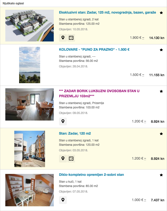 Na Njuškalu smo našli tek nekoliko raspoloživih stambenih jedinica. Cijene su “paprene”.