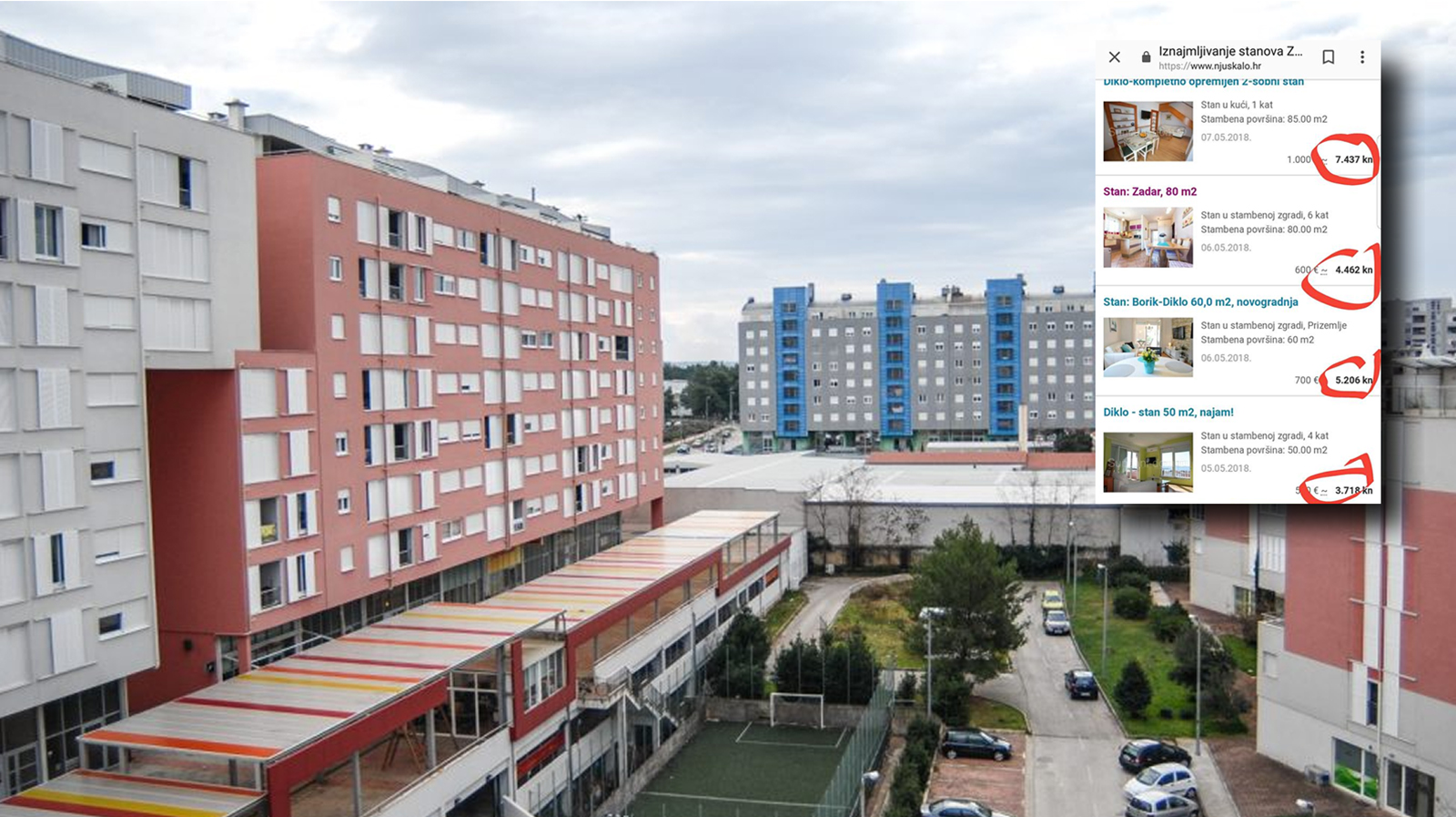 Najjeftiniji, ujedno i najmanji (50 metara kvadratnih) iznajmljuje se za 3.718 kuna. I to je još odlično. Na Boriku, stan od 60 kvadrata nudi se za 5.206 kuna. U Diklu pak, stan od optimalnih 85 kvadrata možete dobiti za 7.437 kuna mjesečno.