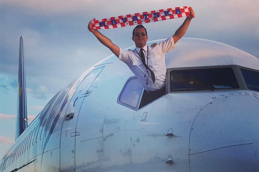 Hrvat koji radi kao kopilot aviokompanije Ryanair prije polijetanja za Karlsruhe odlučio je pokazati ljubav prema hrvatskoj reprezentaciji pa je vireći iz aviona pozirao s navijačkim šalom.
