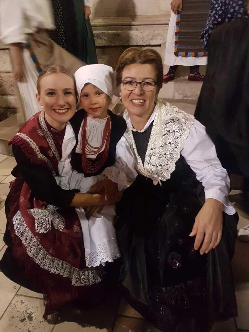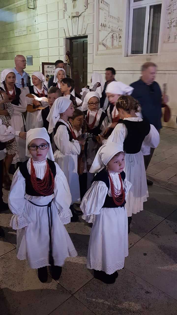 U veličanstvenim zadarskim i splitskim nošnjama na Narodnom trgu defilirale su ljepotice nudeći turistima svježe dalmatinske fritule, Mnoštvo na svakojakim jezicima željelo je saznati tajnu recepta sočne frite, tajnu zadarske nošnje, pjesme, osmijeha, tradicije… Tada su na scenu stupila djeca iz daleke Amerike koja su svojim tamburicama i pjesmom, s akcentom američkog, veličala divnu nam domovinu! Trg je bio prepun ljudi, emocija, jezika, običaja koji su se stopili u cjelinu pjesmom, plesom, osmijehom, riječju, potvrdili su uspjeh projekta Zadarskog Tanca “Lijepa li se Zemljo moja”.