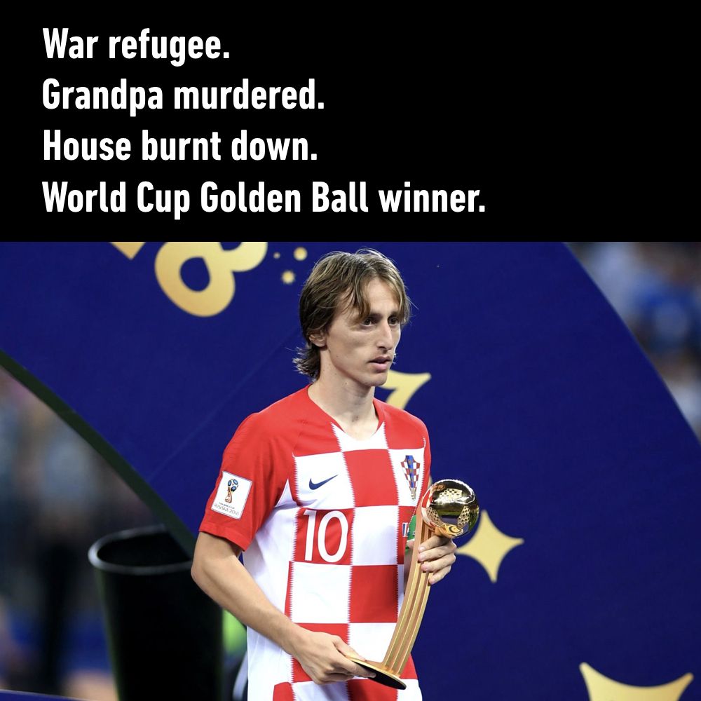 “Ratni izbjeglica. Djed mu ubijen. Kuća zapaljena. Osvajač Zlatne lopte”, napisali su kratko i jasno na 9GAG-u i tako pokazali koliko svijet cijeni kapetana hrvatske reprezentacije. “Samo poštovanje za Luku Modrića”, dodali su, piše Index.hr.
