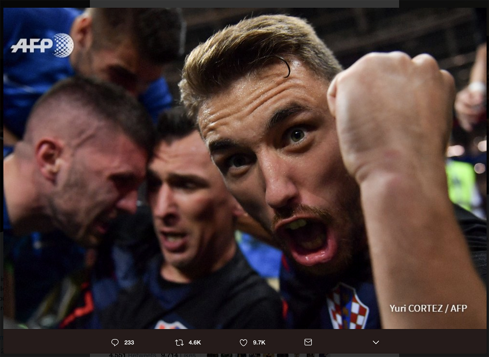 Hrvatski reprezentativci su se momentalno nakon naleta na Corteza prilično zabrinuli za njegovo stanje, ali nakon što su zaključili da je dobro Domagoj Vida odlučio mu je dati pusu u čelo, a uključili su ga i u svoje slavlje.