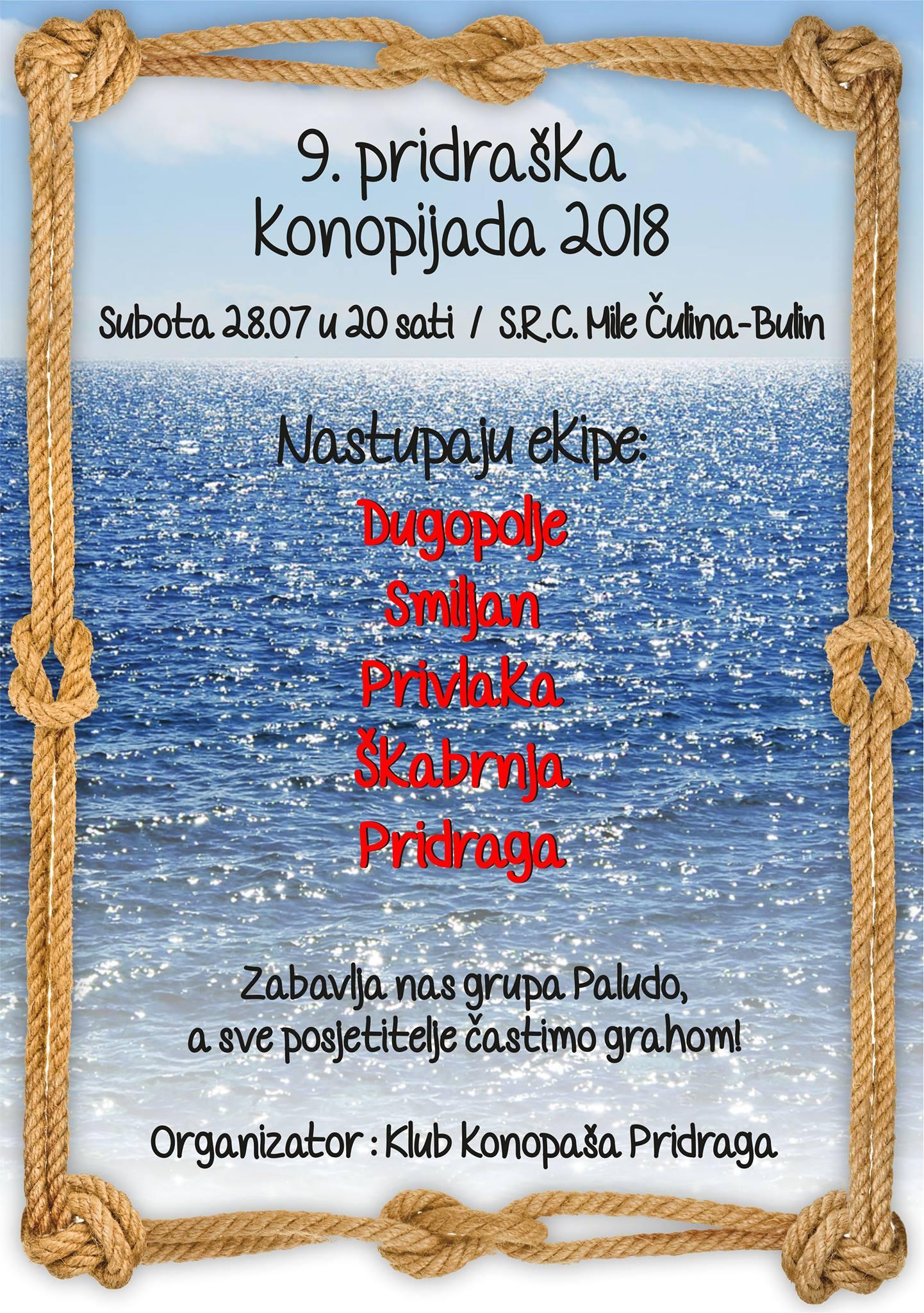 U subotu 28. srpnja s početkom u 20 sati u Pridrazi će se održati nesvakidašnja manifestacija – tradicionalna 9. pridraška konopijada.