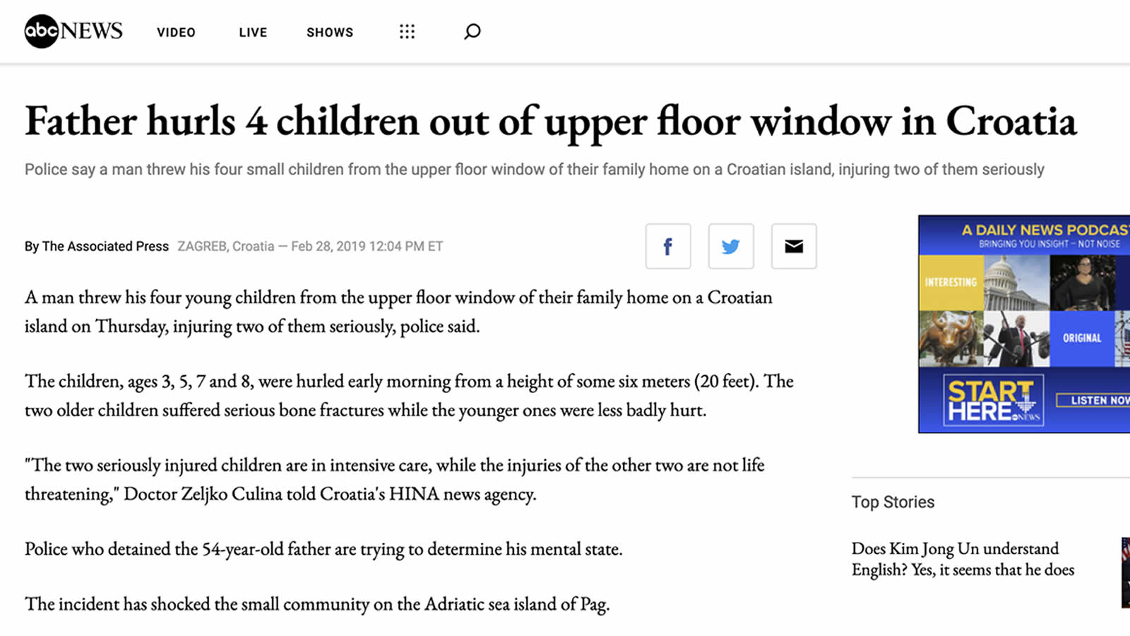 ABC news zaključuje kako je “Incident je zgrozio malu otočnu zajednicu”.