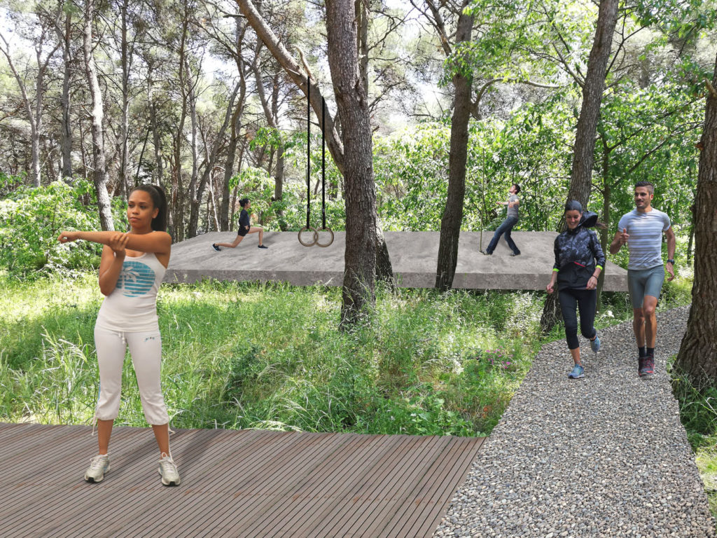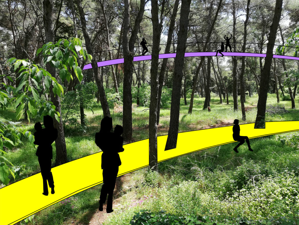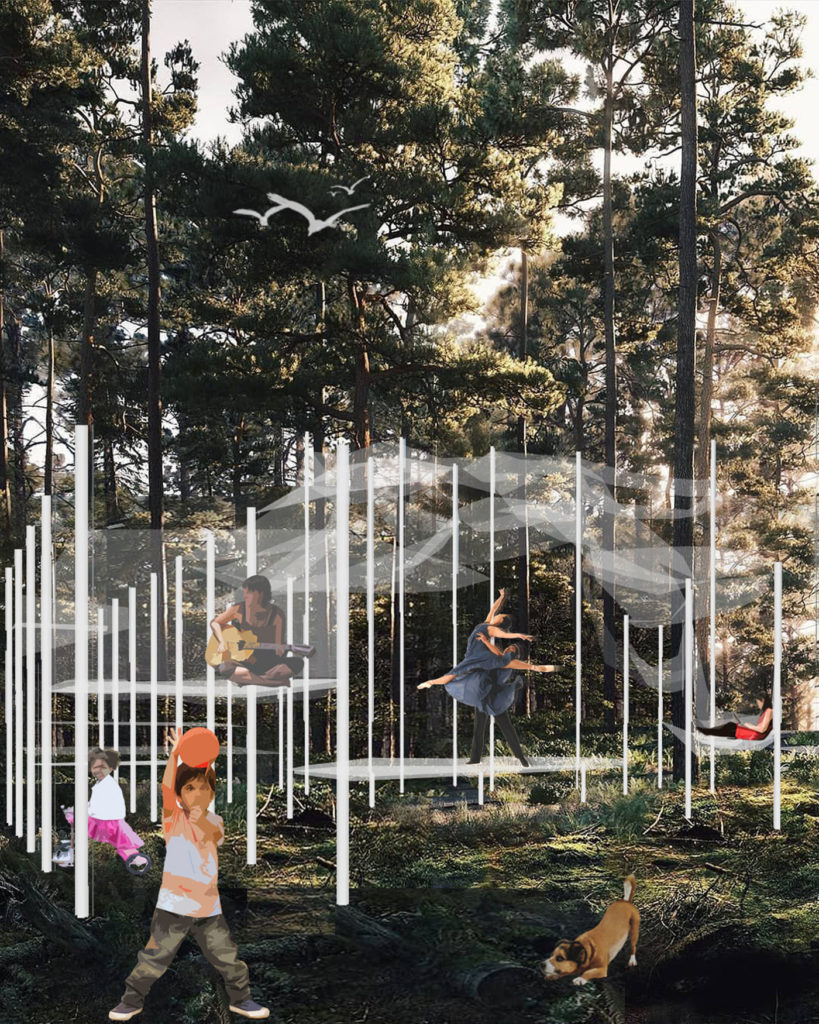 Projekt prvenstveno negira bilo kakva nametnuta kretanja kroz park. Njegov parter se tretira uvijek isto, kao jednolika tekstura pod borovom šumom. Ukidanjem dosad poznatog ponašanja stanovnicima se omogućava istraživanje, stvaranje novih smjerova i prisvajanje krajolika. Glavna premisa podrazumijeva uvođenje svjetla kroz zanemarenu zelenu zonu. S ciljem oplemenjivanja parka preuzima se vertikala, njegov suptilni simbol, koja dobiva niz novih značenja. Od nje se formira jednostavan, low budget modul čijim se multipliciranjem na raznovrsne načine intervenira u prostor.