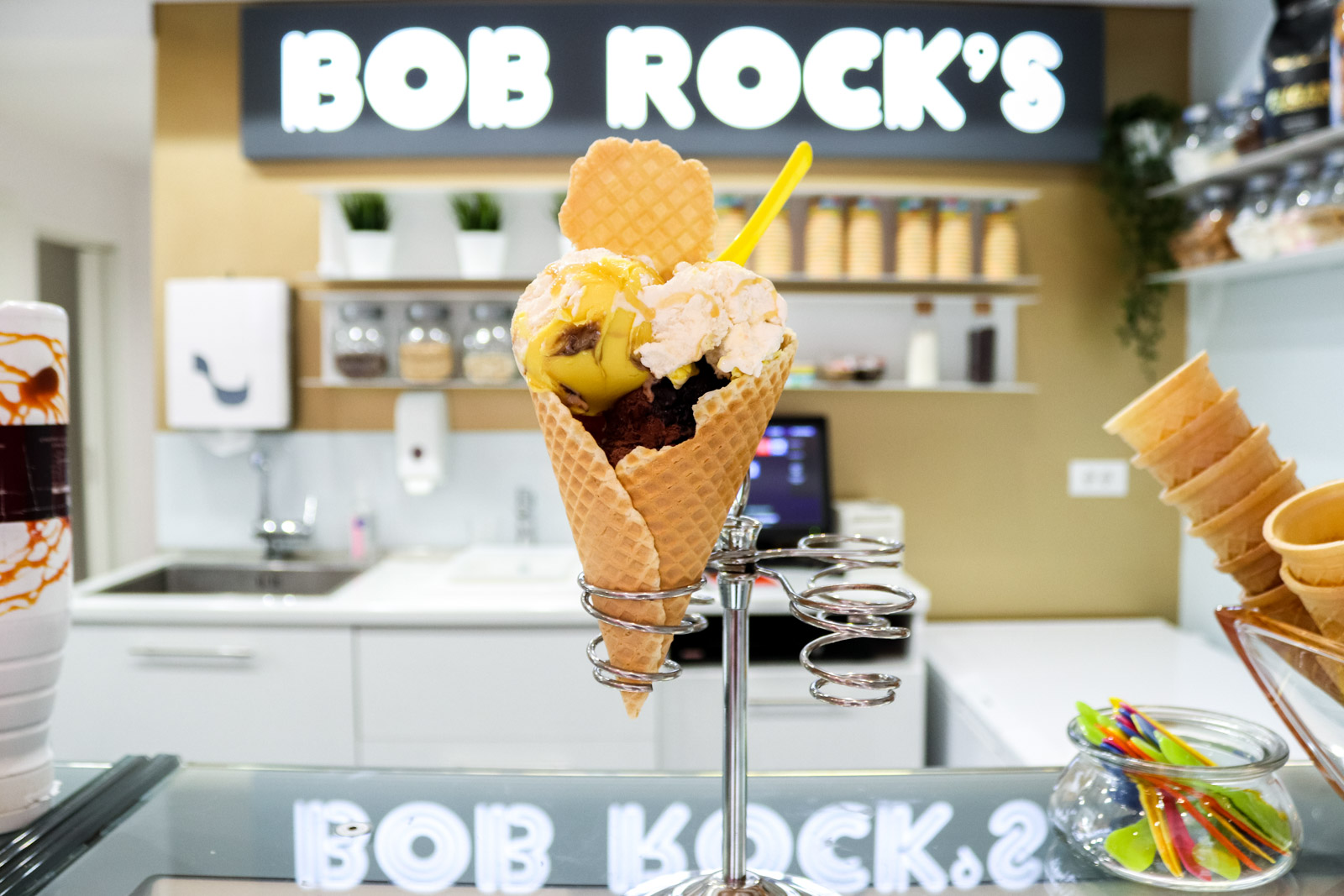 Iza ove sladoledarnice simpatičnog imena kriju se vlasnici, bračni par Sokač. Prostor su uredili u kombinaciji retro i modernog stila, a ideja za ime je došla po liku Boba Rocka iz kultnog stripa Alan Ford, omiljenom stripu vlasnika Marka.