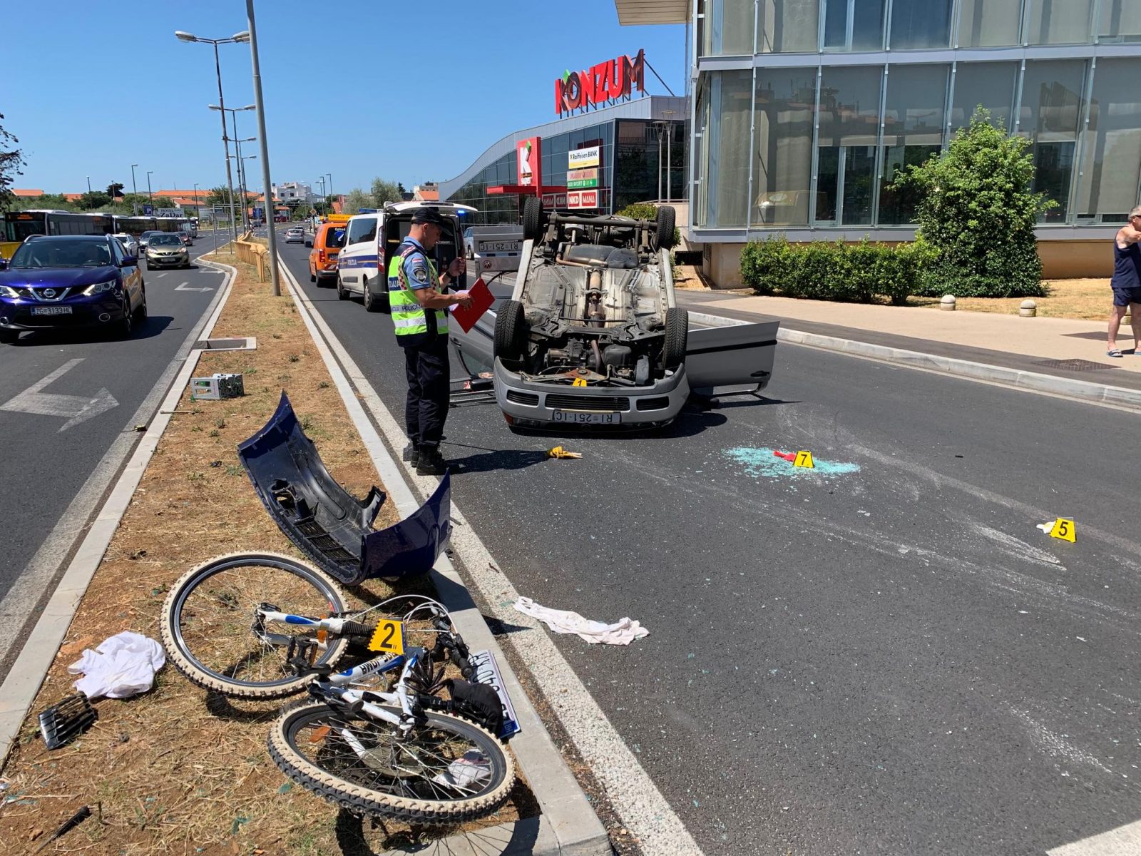 – Udara u automobil riječkih registarskih oznaka koje se prevrće na bočnu stranu. U to vrijeme na pješačkom prijelazu čekalo je dijete. Djevojčica s biciklom 2008. godište, koju automobil pogađa prednjim dijelom.