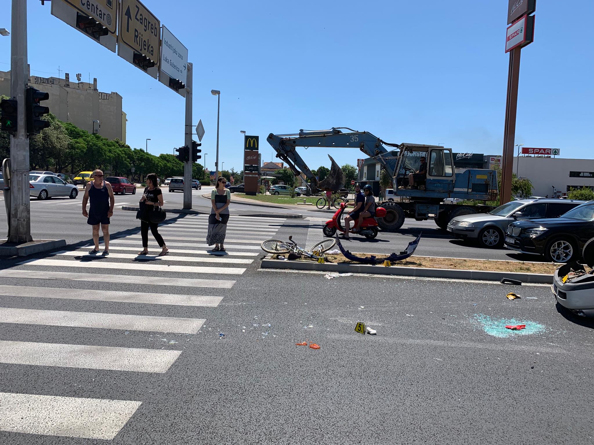 Biciklom je, prema pričama s mjesta događaja, upravljala ženska osoba koja nije propisno sišla prilikom prelaska na pješačkom. Na nju je naletio automobil.