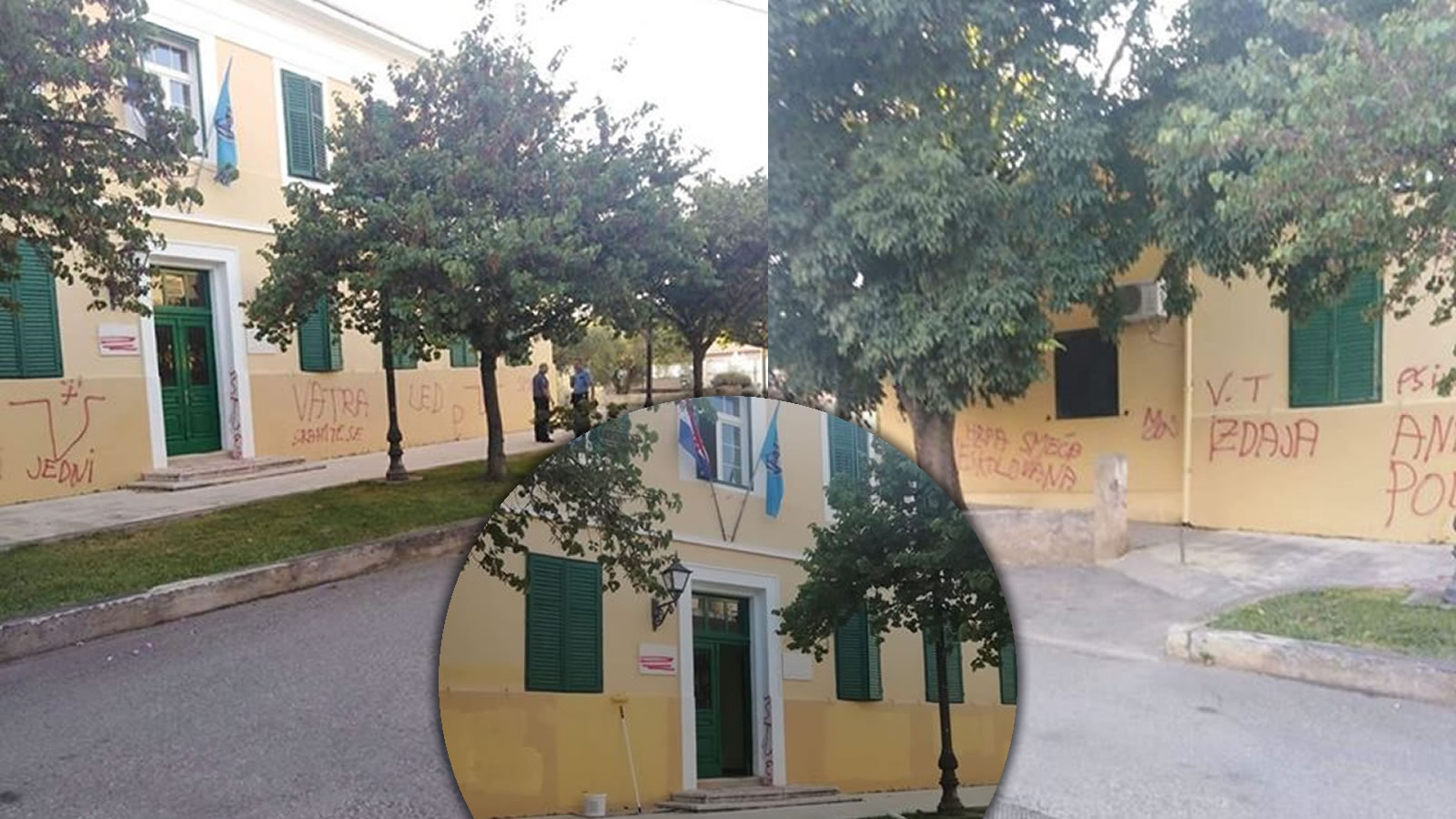 Četvrti napad na zgradu Općine Bibinje; Ovoga puta ispisana grafitima, prethodno gađana fekalijama, minirana i oštećena sjekirom
