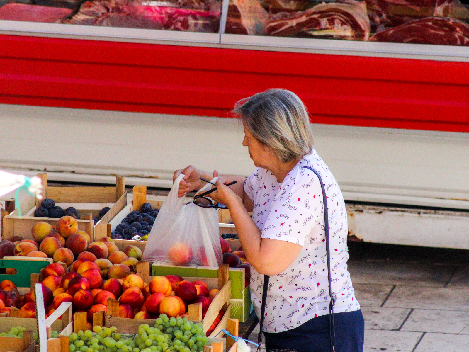 pijaca, plac, trznica, voce, breskve, kupovina, namirnice, hrana, kupovna moc