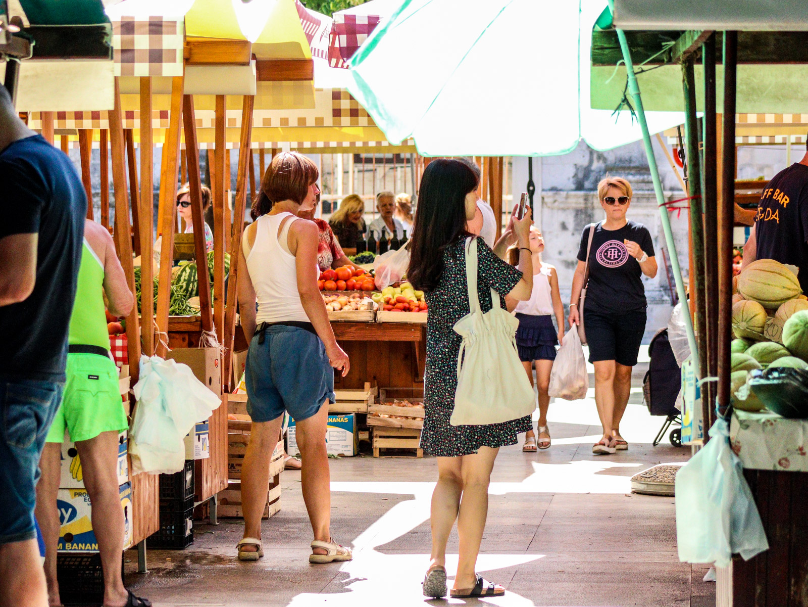 turisti, plac, pijaca, gradska trznica, voce, povrce, kupovina
