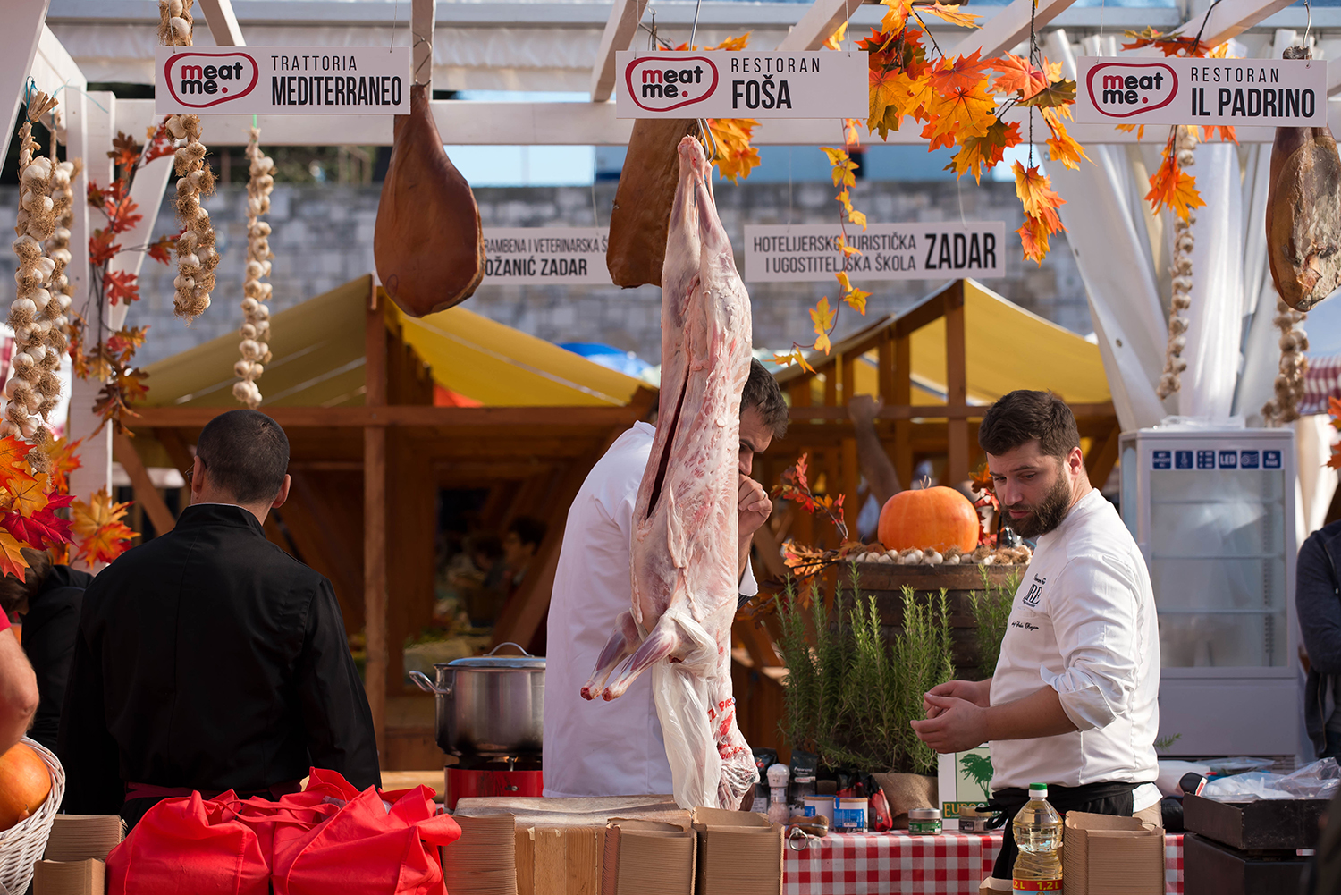 Već prvo jutro Festivala mesa Zadar 2019.g “Meat Me”, u četvrtak, pokazalo je da je ova gastronomsko-zabavna i turistička manifestacija, koja će se još dva dana održavati na Tržnici na Poluotoku, točnije u prostoru Stare pijace, pravi pogodak. Manifestacija je uspjela u svim svojim dimenzijama: po broju posjetitelja, i Zadrana koji su se na pijaci našli namjerno ili slučajno, ali i brojnih turista koju su bili oduševljeni program Festivala, zatim u kvaliteti i okusima tradicionalnih jela “sa žlicom” spravljenih isključivo od mesa ravnokotarske i bukovačke janjetine, sjajnom atmosferom ispod velikog šatora, središnjem mjestu svih zbivanja, čemu je pridonijelo i lijep, pravi proljetni dan kakav se u već poodmaklu jesen može doživjeti samo u Dalmaciji, a pogotovo