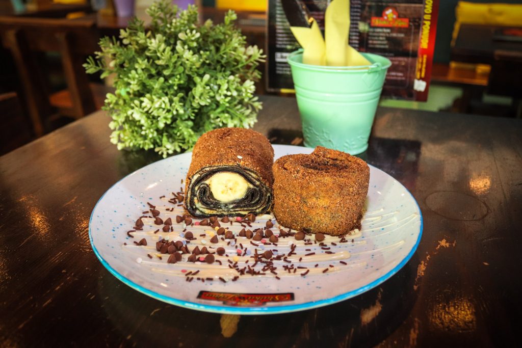 Probajte slatku pohanu palačinku s umakom od višnje, crnom čokoladom i sladoledom ili pak onu s nutellom, keksom, lješnjakom, ferrerom i sladoledom.