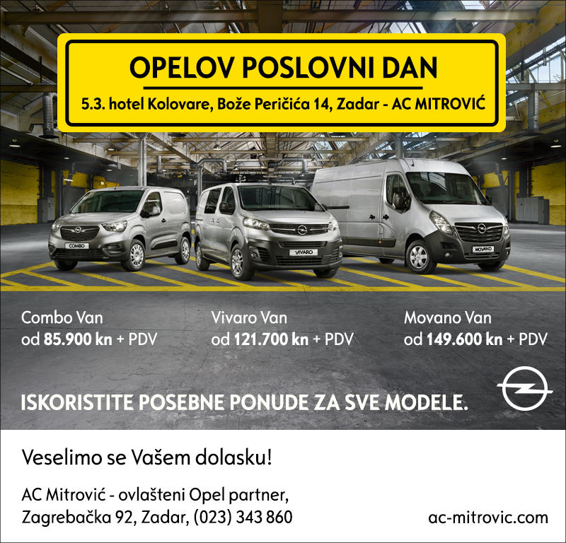 Autocentar Mitrović Vas poziva u četvrtak, 5. ožujka ispred hotela Kolovare u Zadru, Ul. Bože Peričića 14. Saznajte sve novosti o Opelovoj gami gospodarskih i putničkih vozila i iskoristite posebne ponude za sve modele.