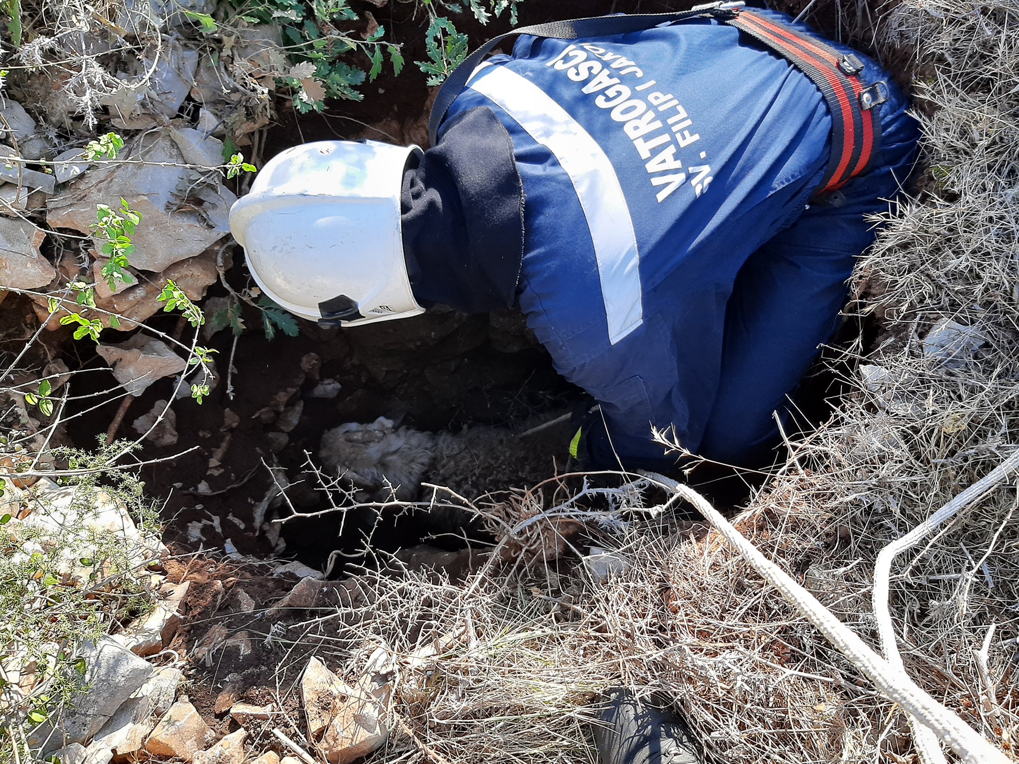 FOTO Vatrogasci spašavali ovna iz uske jame duboke 2 i pol metra u Raštanima Donjim
