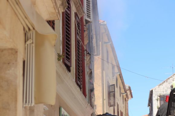 Vatrogasci i dalje stavljaju pod kontrolu požar koji je jutros oko 11:15 sati buknuo u Ulici Elizabete Kotromanić, u neposrednoj blizini Narodnog trga.