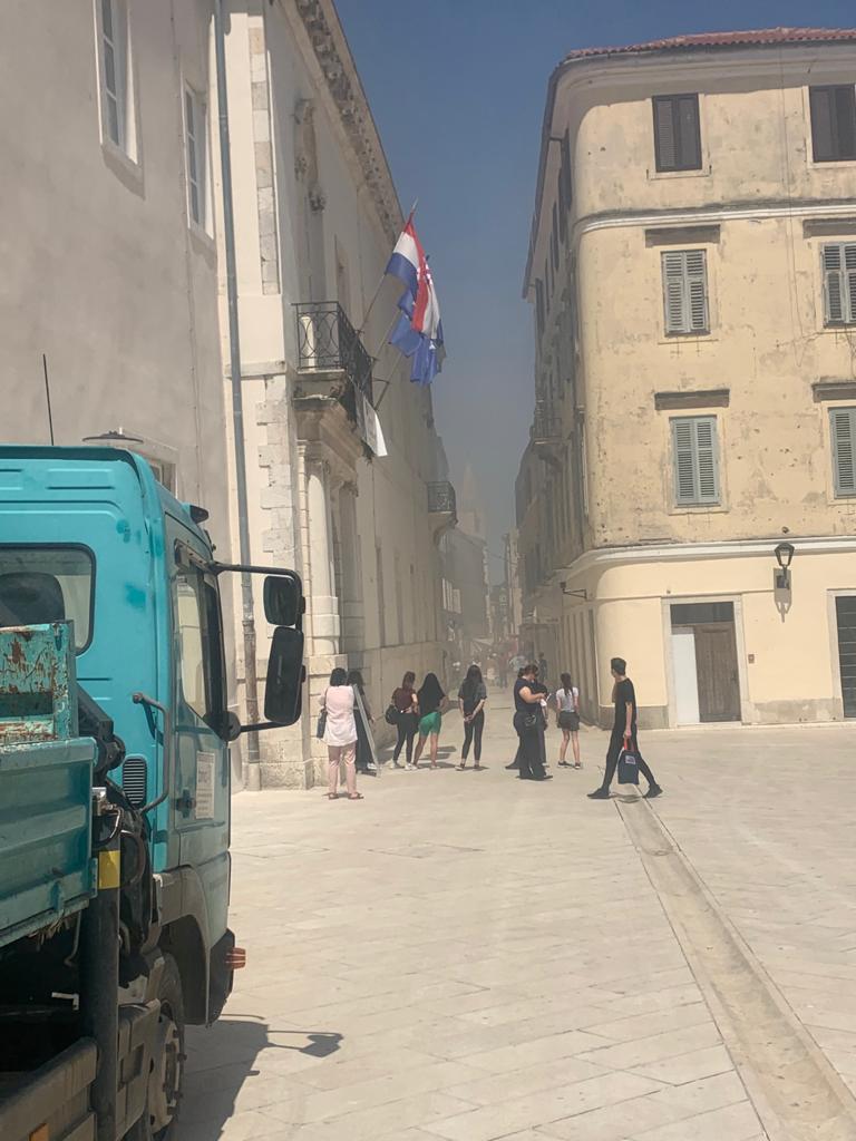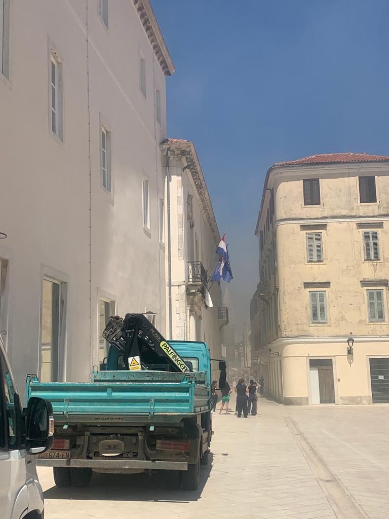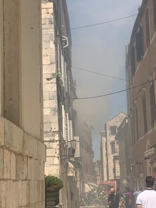 Jutros, oko 11:30 sati izbio je požar u u centru grada u blizini Narodnog trga, a u tijeku je akcija gašenja.