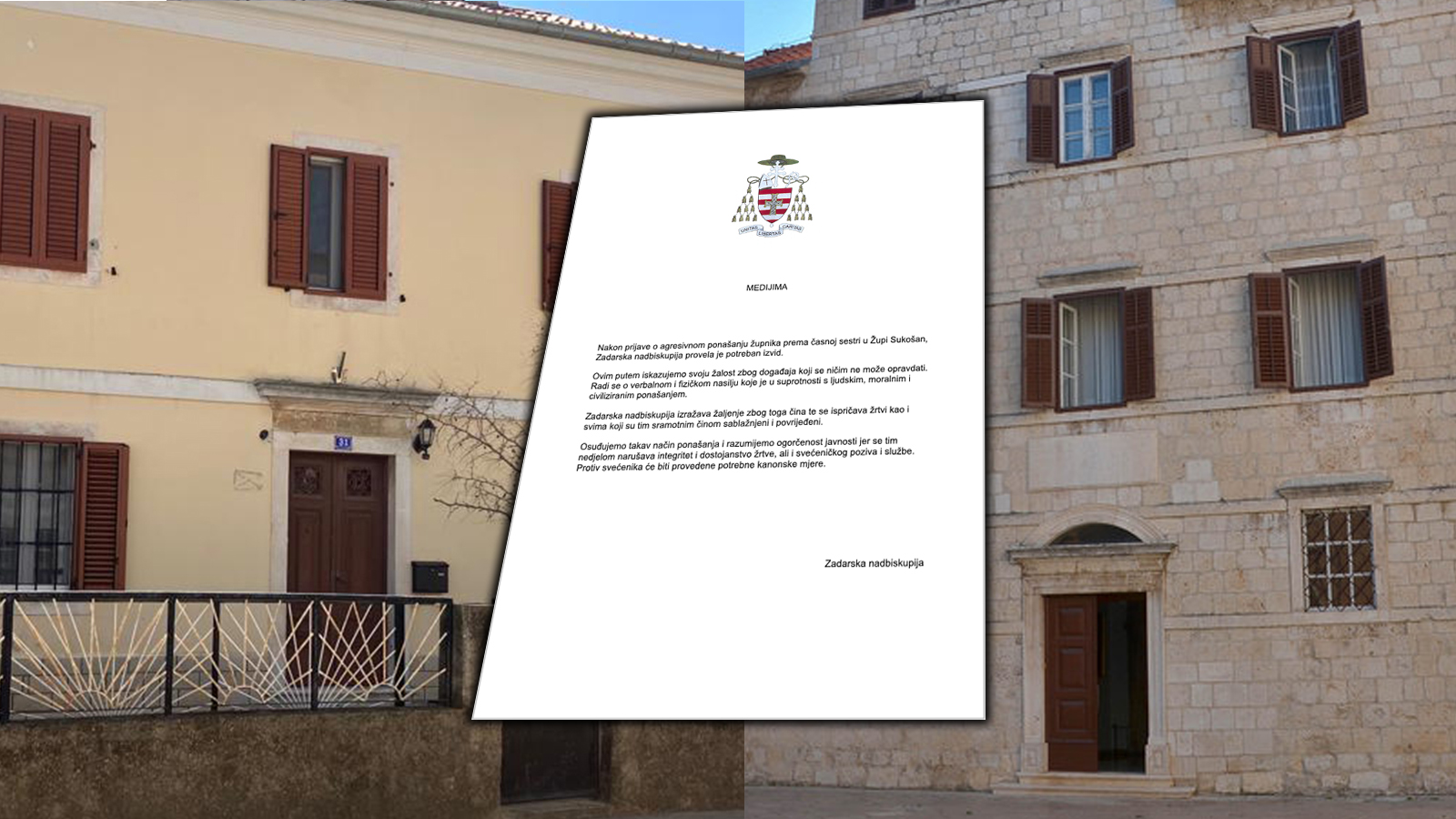 – Nakon prijave o agresivnom ponašanju župnika prema časnoj sestri u Župi Sukošan, Zadarska nadbiskupija provela je potreban izvid. Ovim putem iskazujemo svoju žalost zbog događaja koji se ničim ne može opravdati. Radi se o verbalnom i fizičkom nasilju koje je u suprotnosti s ljudskim, moralnim i civiliziranim ponašanjem, navode iz nadbiskupije.