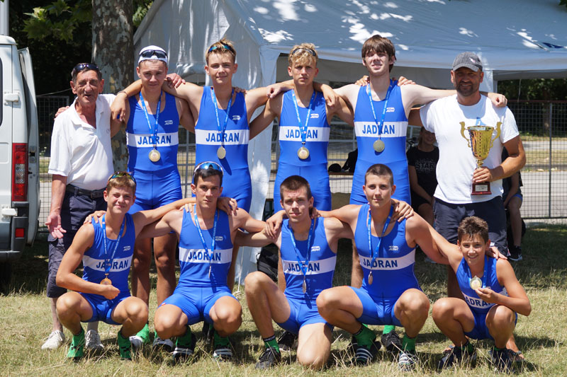 Veslači Jadrana osvojili su devet medalja na 32.(79.)Hrvatskom veslačkom prvenstvu za juniore i kadete koje se održalo na regatnoj stazi jezera Jarun u Zagrebu.