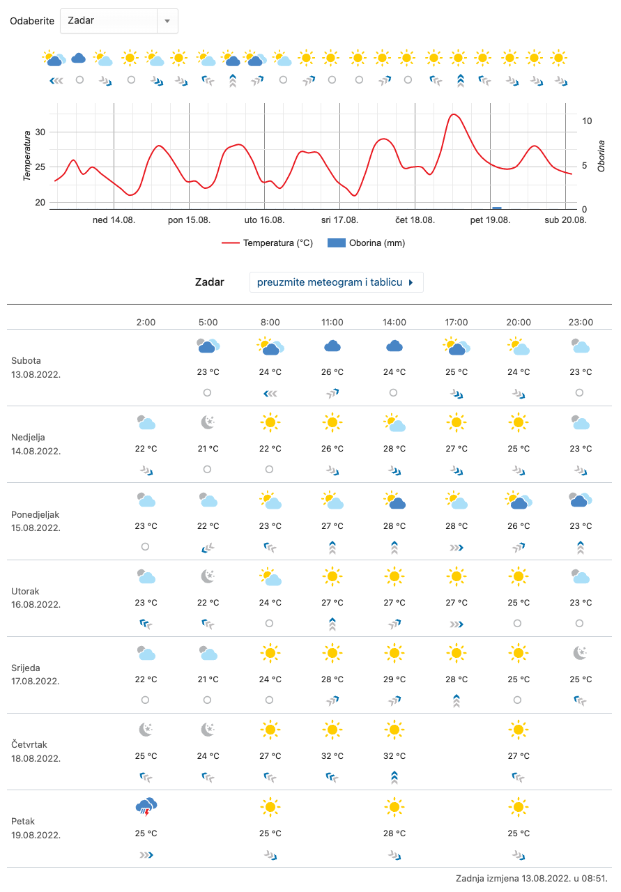 Danas u našoj zemlji uglavnom kiša, na Jadranu moguće oluje; Temperatura u Zadru danas se penje do ugodnih 28 Celzijevaca