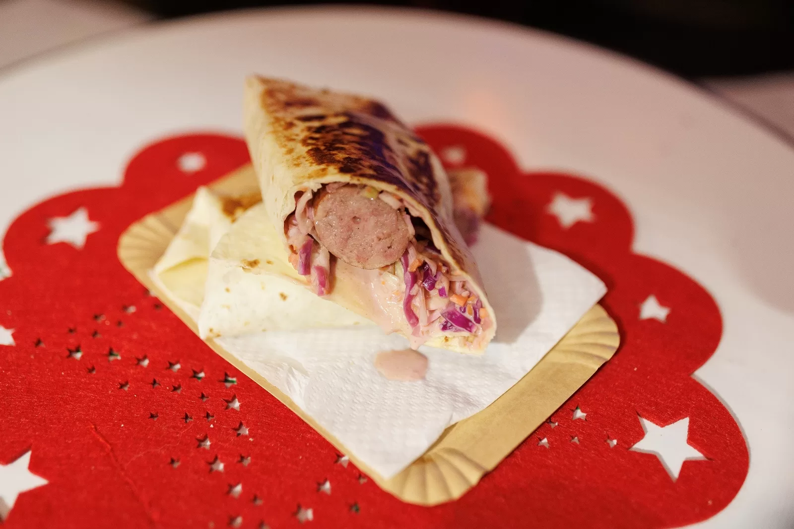 Zadarska Pizzerija Gušti poznata je po svojim sjajnim dalmatinskim picama, ali je ovaj tim kojeg predvodi Toni Zurak odlučio na adventskom sajmu predstaviti s drugačijom ponudom – kombinacijom dobrog fast fooda (pohana rolana piletina u tijestu) i dalmatinskim gastro klasicima poput pašticade s njokima. U kućici se pari iz povećeg kotlića punog domaćih kobasica, a Winter Paradise jedina nudi i bogatu hladnu platu, složenu u praktičnoj i odličnoj dizajniranoj kutiji. „Mali zalogaj za veliki događaj“ kombinacija je nekoliko vrsta vrhunskih sireva, pršuta, voća i grisina. Praktično i ukusno za hladnije zimske večeri uz kuhano vino ili gin.